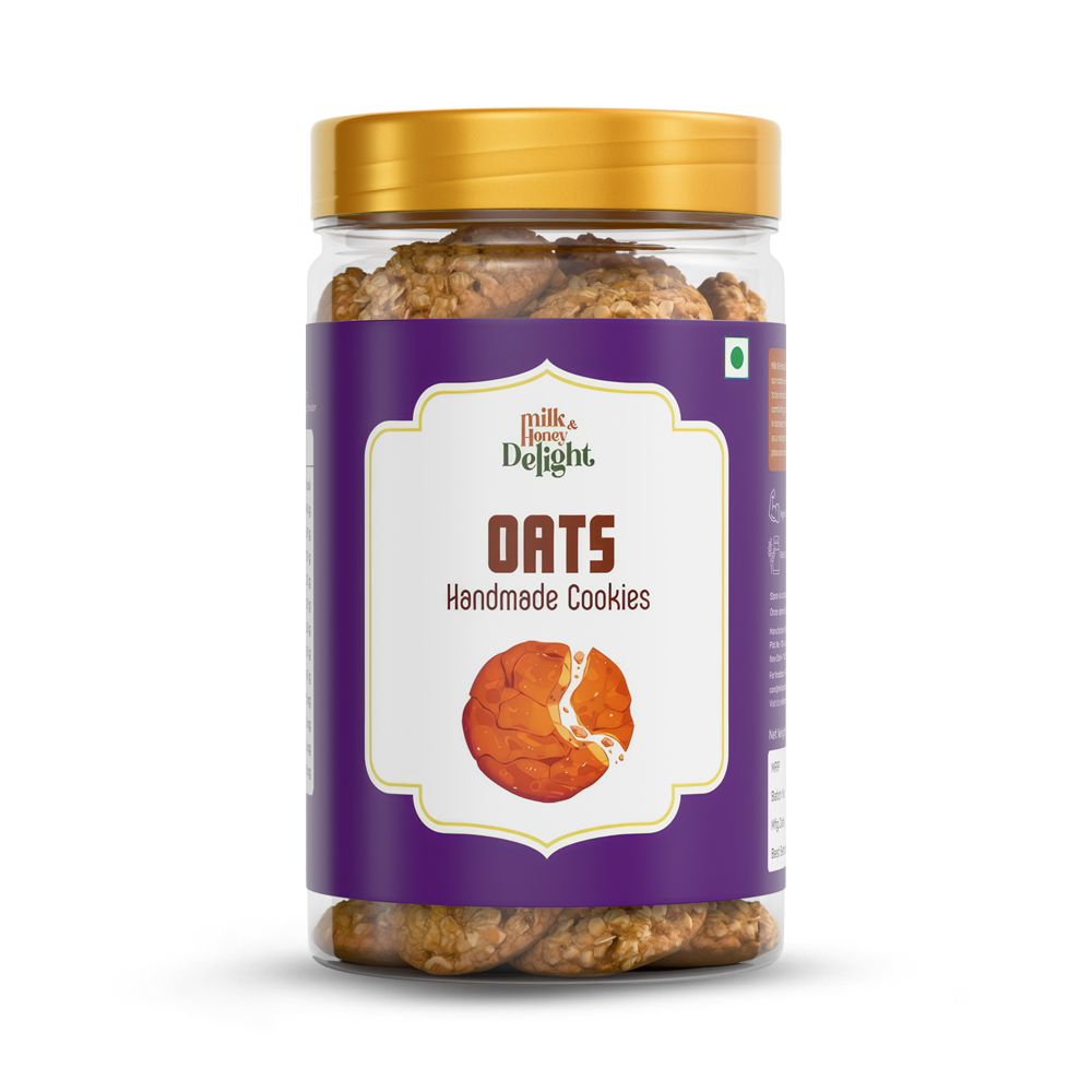 Baked in our home kitchen with love and care, our Oats Cookies contain no preservatives, no maida (refined flour), and no artificial flavors. Just simple, natural ingredients blended to create a cookie that’s both nourishing and delicious.